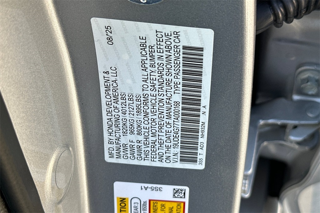 - VIN : 19UDE4G77TA000168