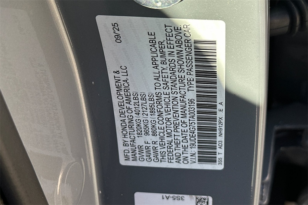 - VIN : 19UDE4G75TA003196