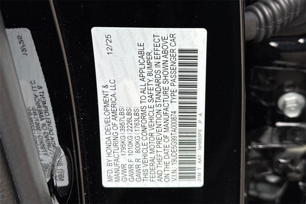- VIN : 19UDE5G99TA000874