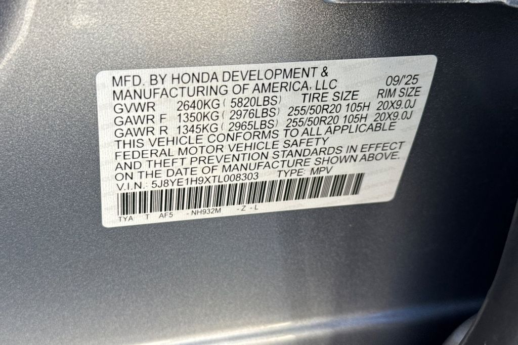 - VIN : 5J8YE1H9XTL008303