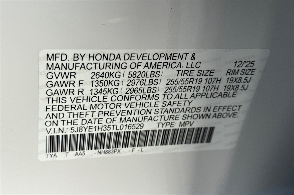 - VIN : 5J8YE1H35TL016529