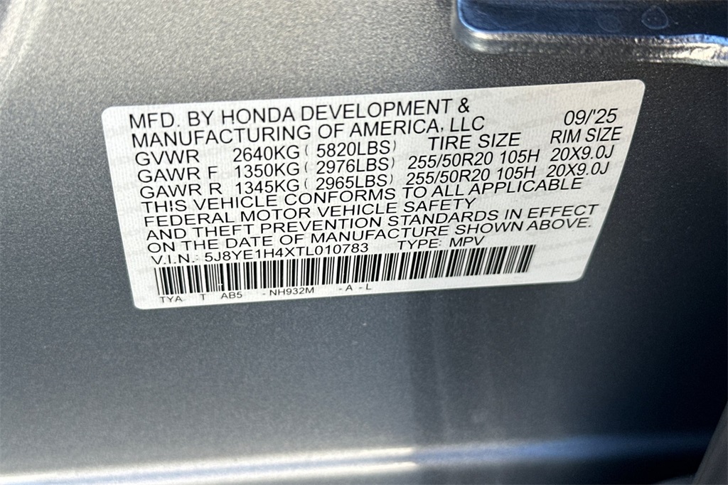 - VIN : 5J8YE1H4XTL010783