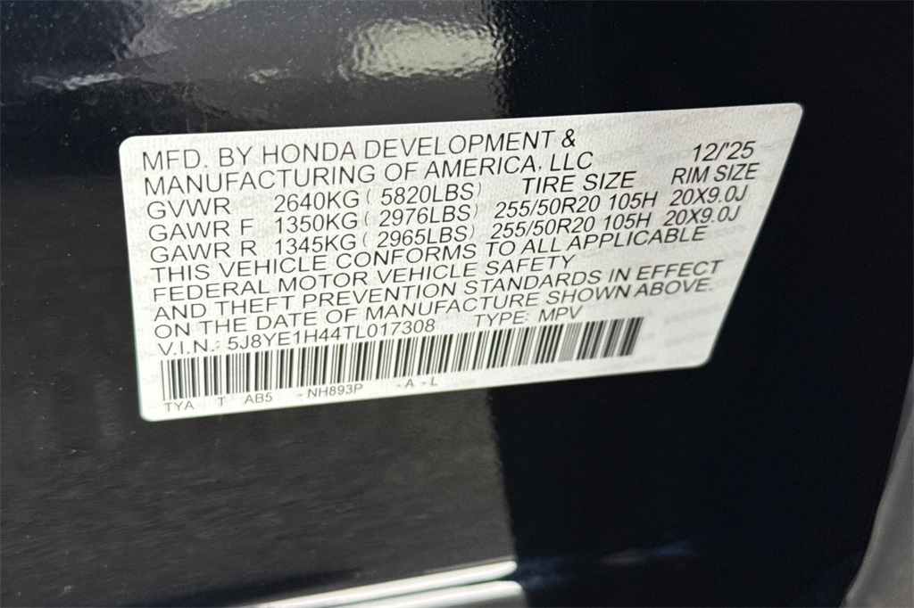 - VIN : 5J8YE1H44TL017308