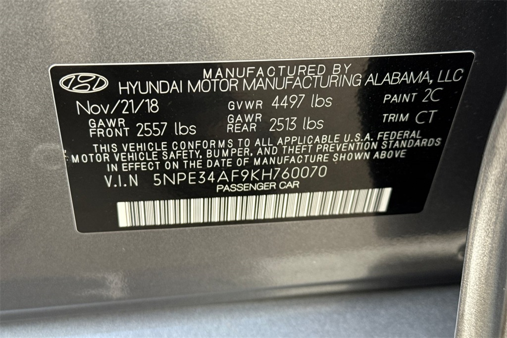 - VIN : 5NPE34AF9KH760070