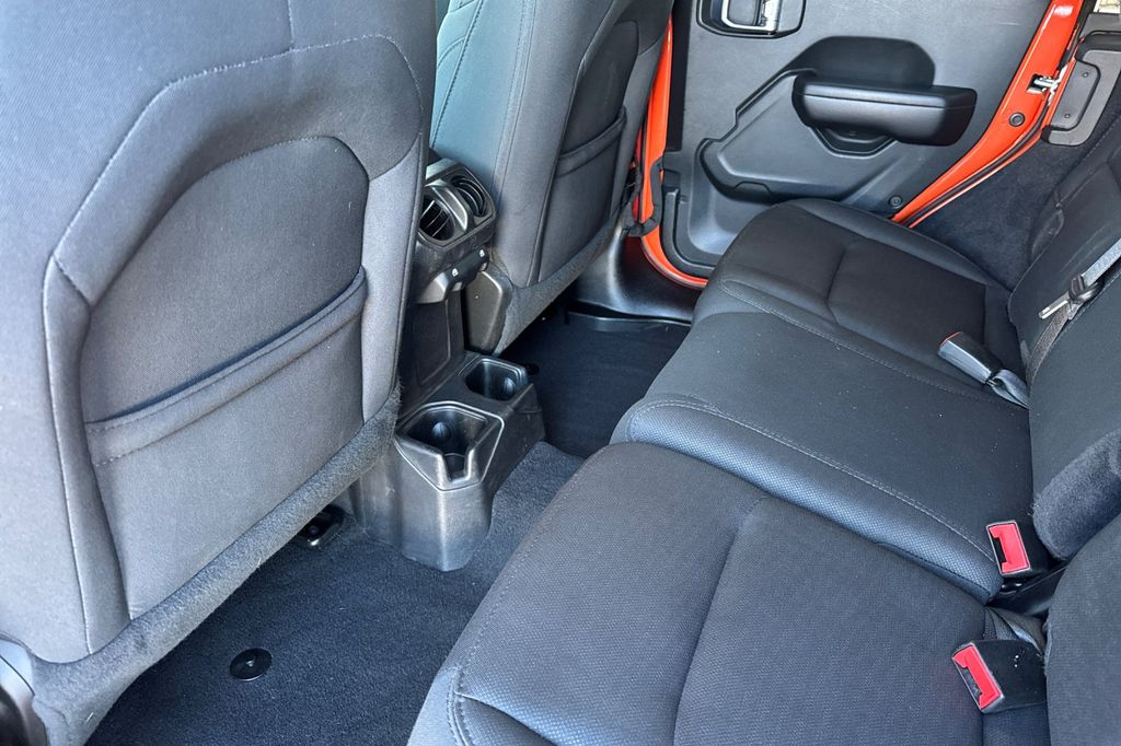 The interior of the Jeep Wrangler is designed for comfort and convenience. The cloth seat upholstery is cozy throughout all seasons, and the 6-way adjustable driver seat ensures you can find your ideal driving position with ease. Additionally, three USB ports provide the necessary connectivity for charging devices or playing your favorite tunes during long road trips.