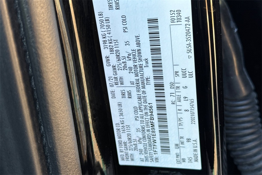 - VIN : 1FTFW1E89MFB94561