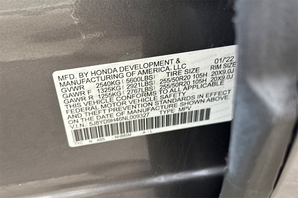 - VIN : 5J8YD9H46NL009327