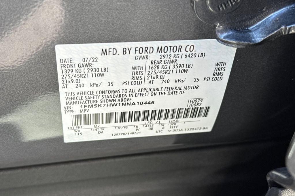 - VIN : 1FM5K7HW1NNA10446