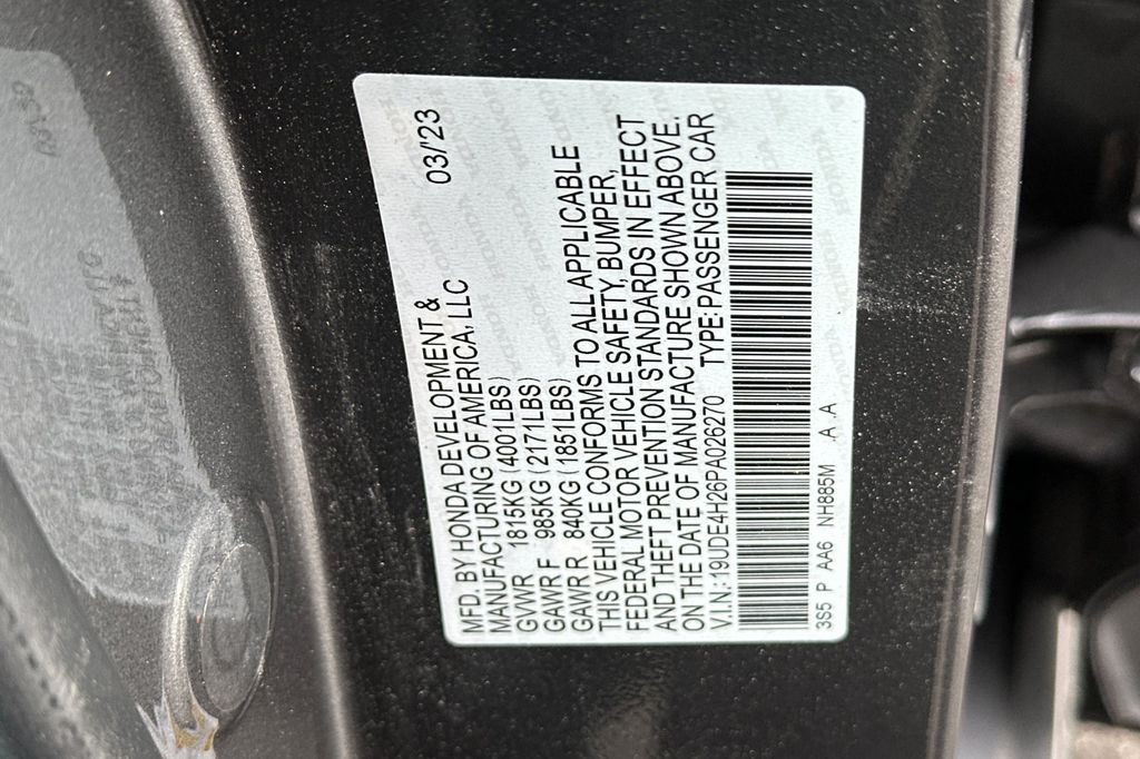 - VIN : 19UDE4H26PA026270