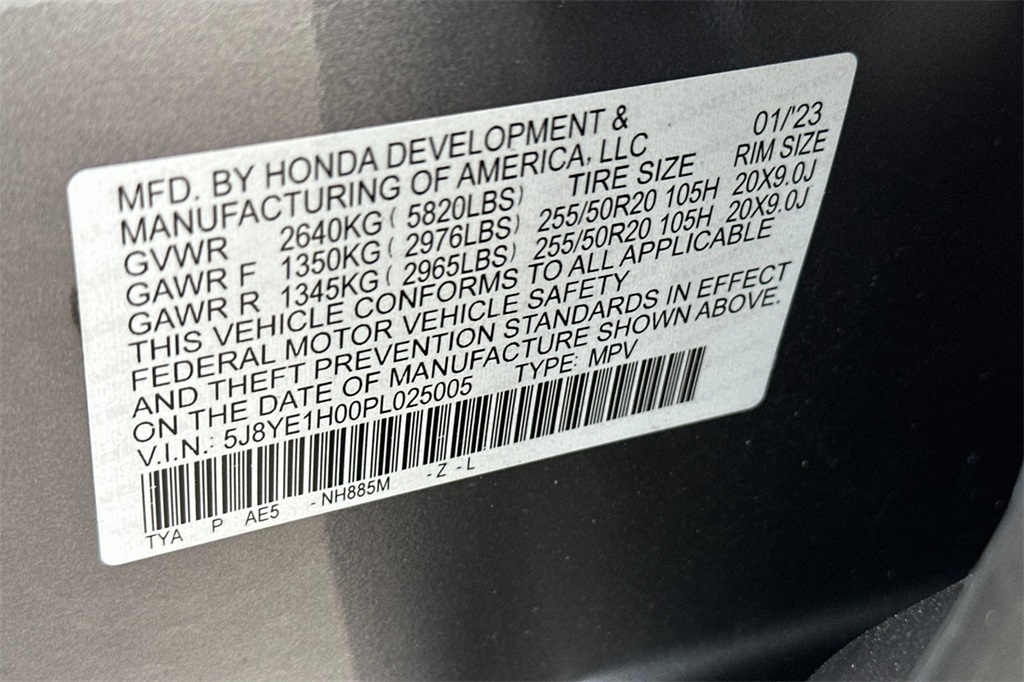 - VIN : 5J8YE1H00PL025005
