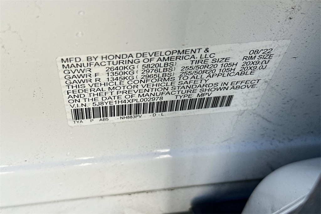 - VIN : 5J8YE1H4XPL002978