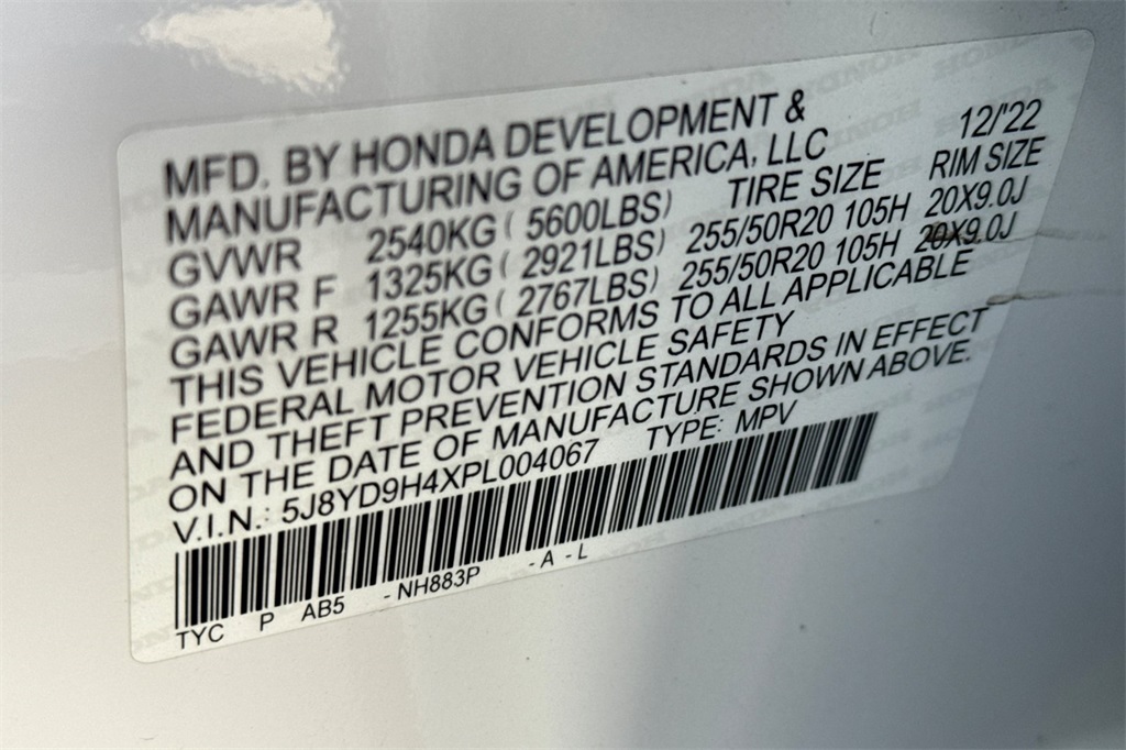- VIN : 5J8YD9H4XPL004067