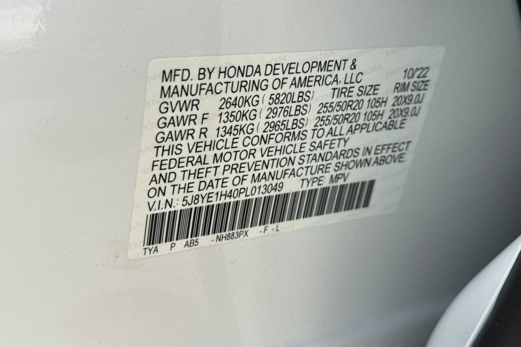 - VIN : 5J8YE1H40PL013049