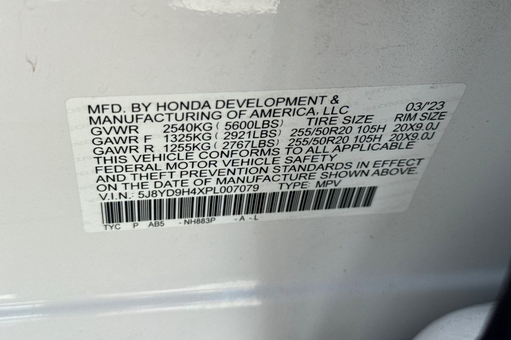 - VIN : 5J8YD9H4XPL007079