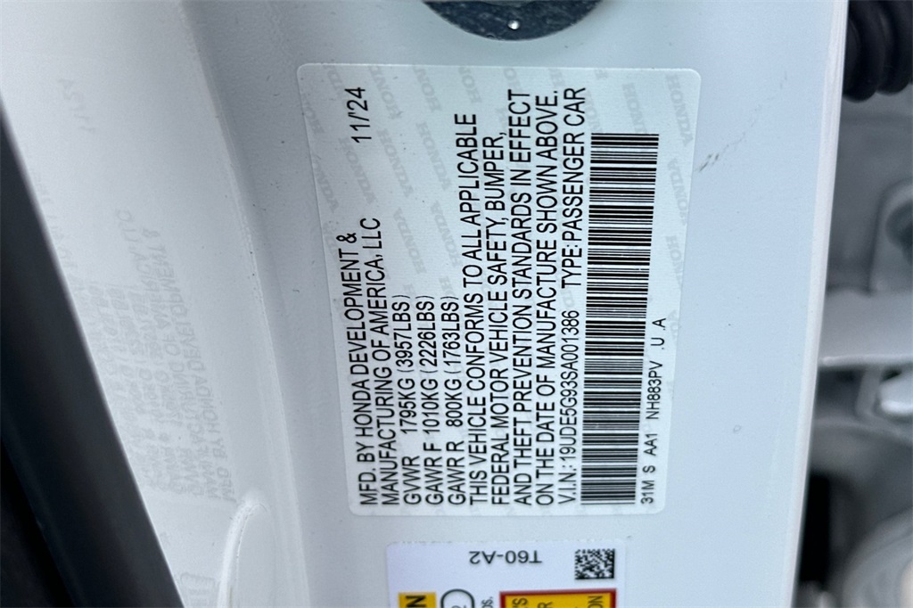 - VIN : 19UDE5G93SA001386
